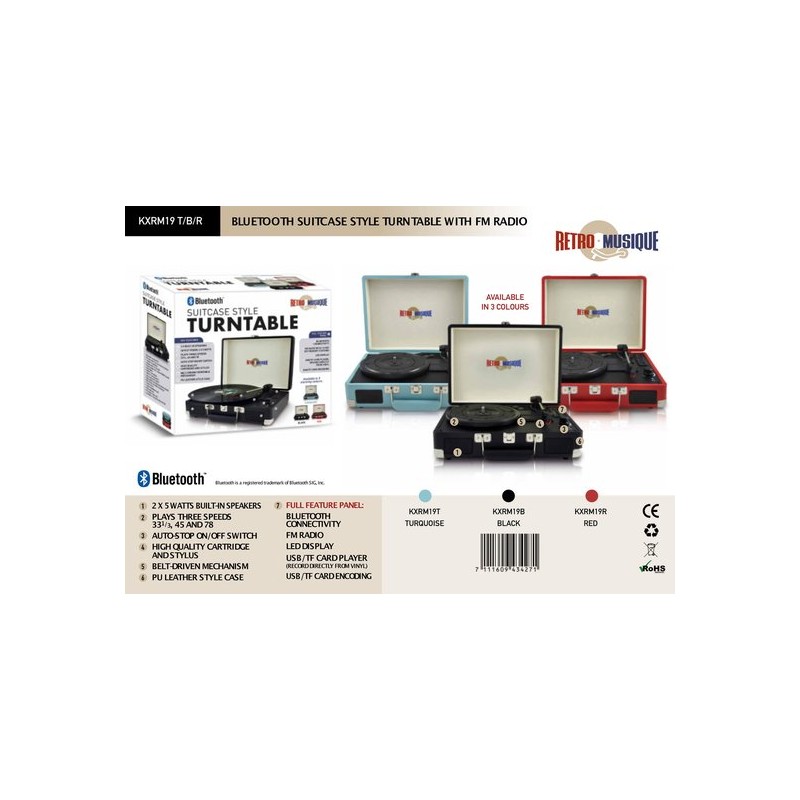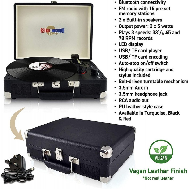 Retro Musique KXRM19 suitcase-style record player, Black